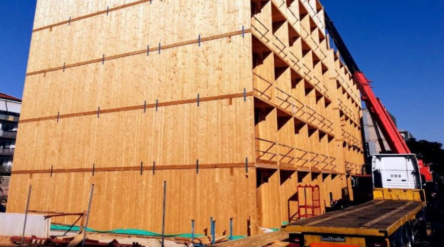 El proyecto consistió en la construcción de un edificio modular de madera contralaminada de varios niveles. Su destino principal fue la vivienda plurifamiliar, lo que demuestra la capacidad del CLT para adaptarse a proyectos de mayor escala y no limitarse a casas unifamiliares.