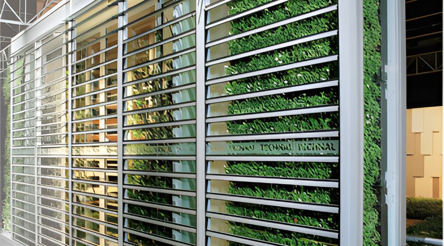Es un sistema de protección solar móvil para huecos de fachada que incorpora un panel con plantas que actúan como protección contra la radiación solar, sombreando la fachada y haciendo que la temperatura del aire adyacente al muro baje.