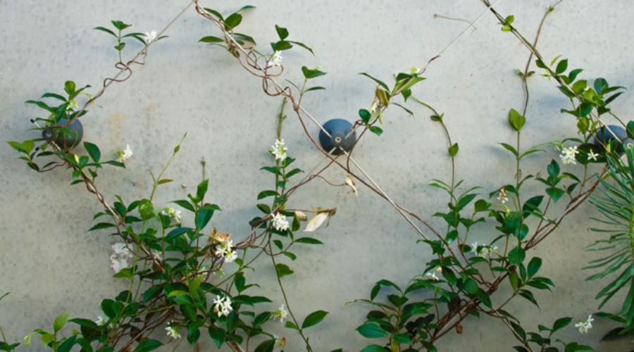 Se recomiendan especies como la hortensia trepadora y los jazmines amarillo y silvestre en orientaciones sur. Para las de norte es más acertada especies de hoja perenne como la hiedra de hoja pequeña.