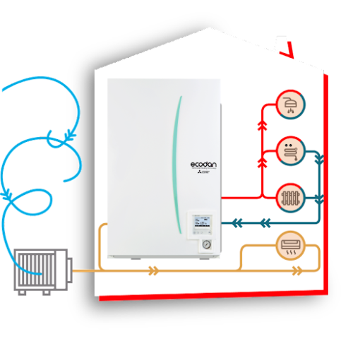 - Calefacción: Los productos ECODAN aerotermia, proporcionan sistemas de calefacción eficientes para hogares y edificios comerciales, asegurando un ambiente cálido y confortable en invierno.