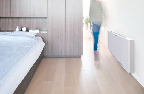 Un convector de bomba de calor que combina calefacción, aerotermia y refrigeración en un solo producto. Puede combinarse con suelo radiante y sustituir a radiadores obsoletos. También puede conectarse a bombas de calor de baja temperatura para alcanzar capacidades más altas.