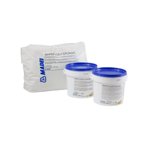 Mapefloor CPU/HD es un mortero tricomponente, a base de poliuretano y cemento fabricado por la empresa Mapei, con una elevada resistencia química y mecánica, recomendado para el revestimiento de pavimentos industriales con un espesor mínimo de 6 a 9 mm.