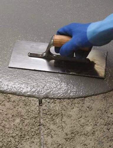 Se debe proceder a verter la mezcla de Mapefloor CPU/HD sobre el pavimento distribuyendo uniformemente en el espesor deseado con una llana lisa, una dentada o con una regla niveladora.