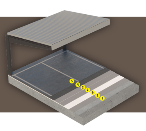 Este sistema está principalmente ideado para ser empleado en zonas de parkings, hangares y estadios. Los principales beneficios que aporta son una alta resistencia al tráfico rodado y alto, propiedades mecánicas aseguradas en extremas temperaturas que varían de -40ºC a +90ºC, y un acabado superficial de fácil limpieza.