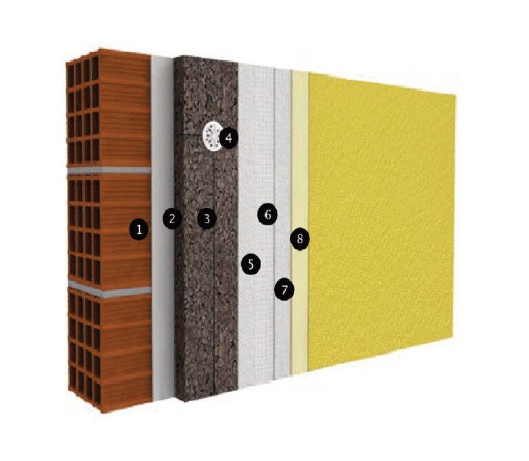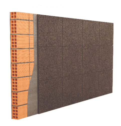 altas prestaciones térmicas y acústicas y está compuesto por placas de fibra de madera disponibles en distintas densidades según se requiera , utiliza el IsovitE-Corckcomo mortero natural, el cual presenta altas prestaciones para el pegado y la regularización del aislante.