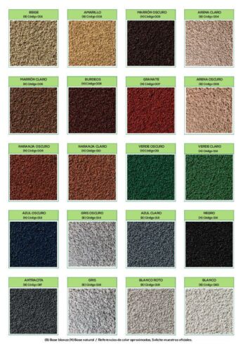 - Decorativo: el acabado final mejora la estética del edificio, elija entre 20 colores, con acabado grueso o fino.