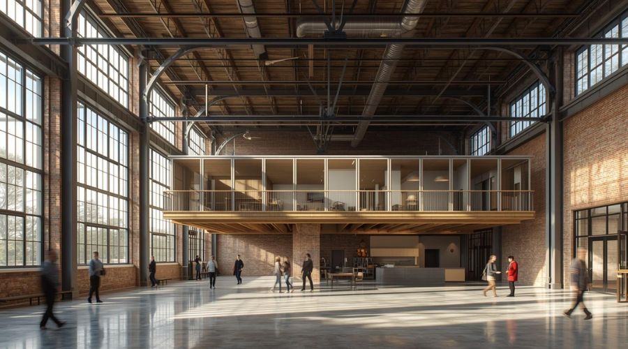 Las grandes naves industriales resultan especialmente adecuadas para albergar usos culturales, mercados urbanos, centros de innovación o espacios educativos. Sus amplias dimensiones estructurales permiten configuraciones espaciales difíciles de replicar en edificios convencionales y ofrecen una gran flexibilidad para futuras transformaciones.