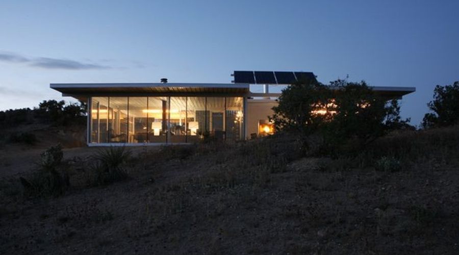 Está compuesta por cuatro módulos prefabricados, agrupados según una configuración cuadrada, dentro de una finca que ocupa una extensión de casi 77 hectáreas. La vivienda se autoabastece energéticamente gracias a unos paneles solares colocados en su cubierta y dispone de grandes cerramientos acristalados en una de sus fachadas.