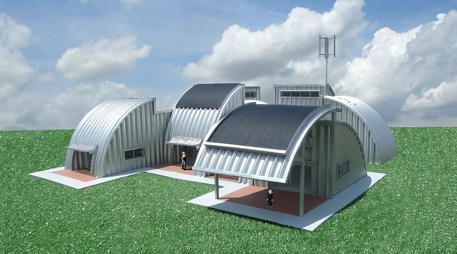 La construcción de esta vivienda ha sido pensada en módulos abovedados diseñados a partir de hojas de acero unidas entre sí. Este tipo de construcción agiliza los tiempos y reduce los costos.
